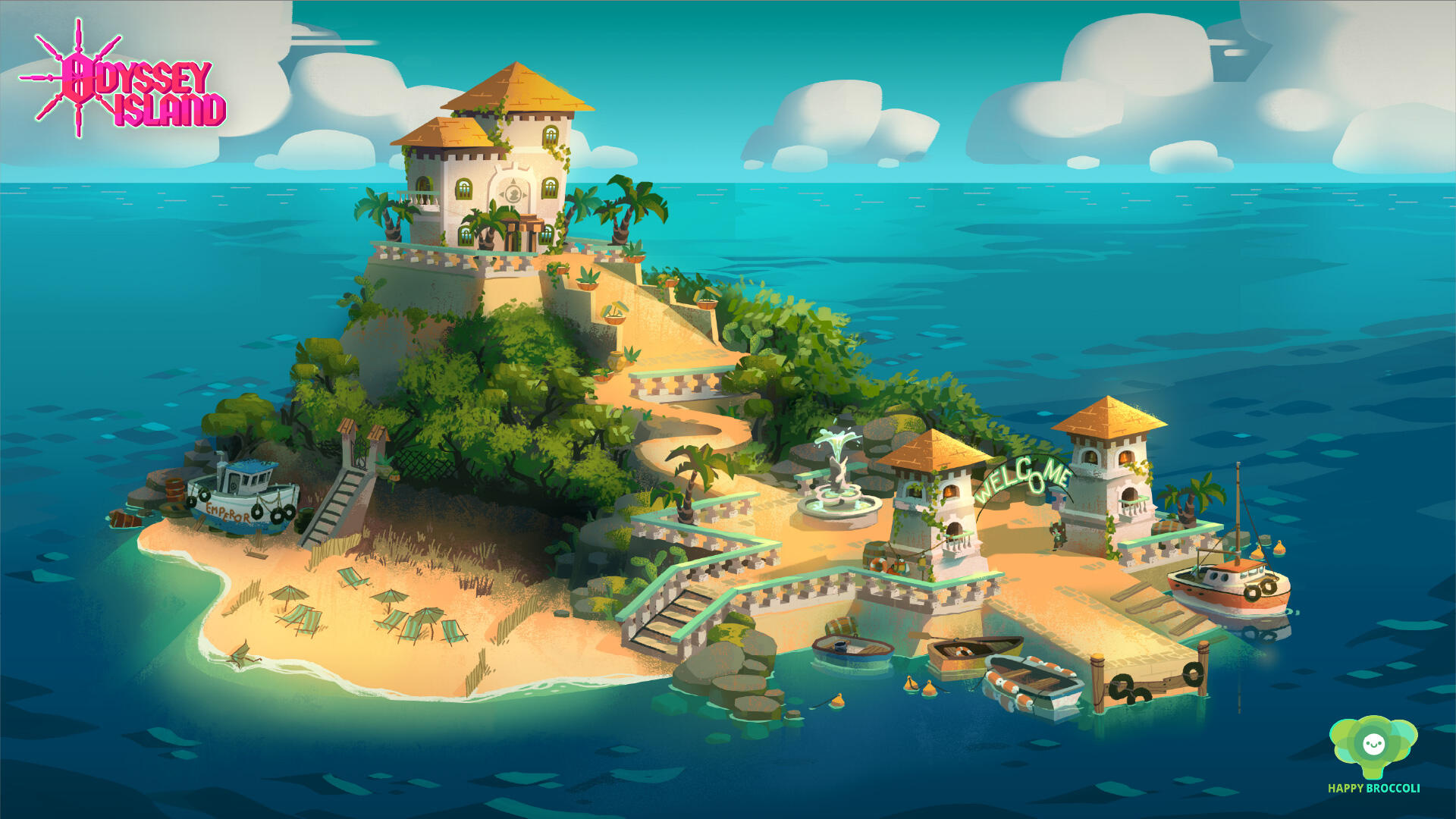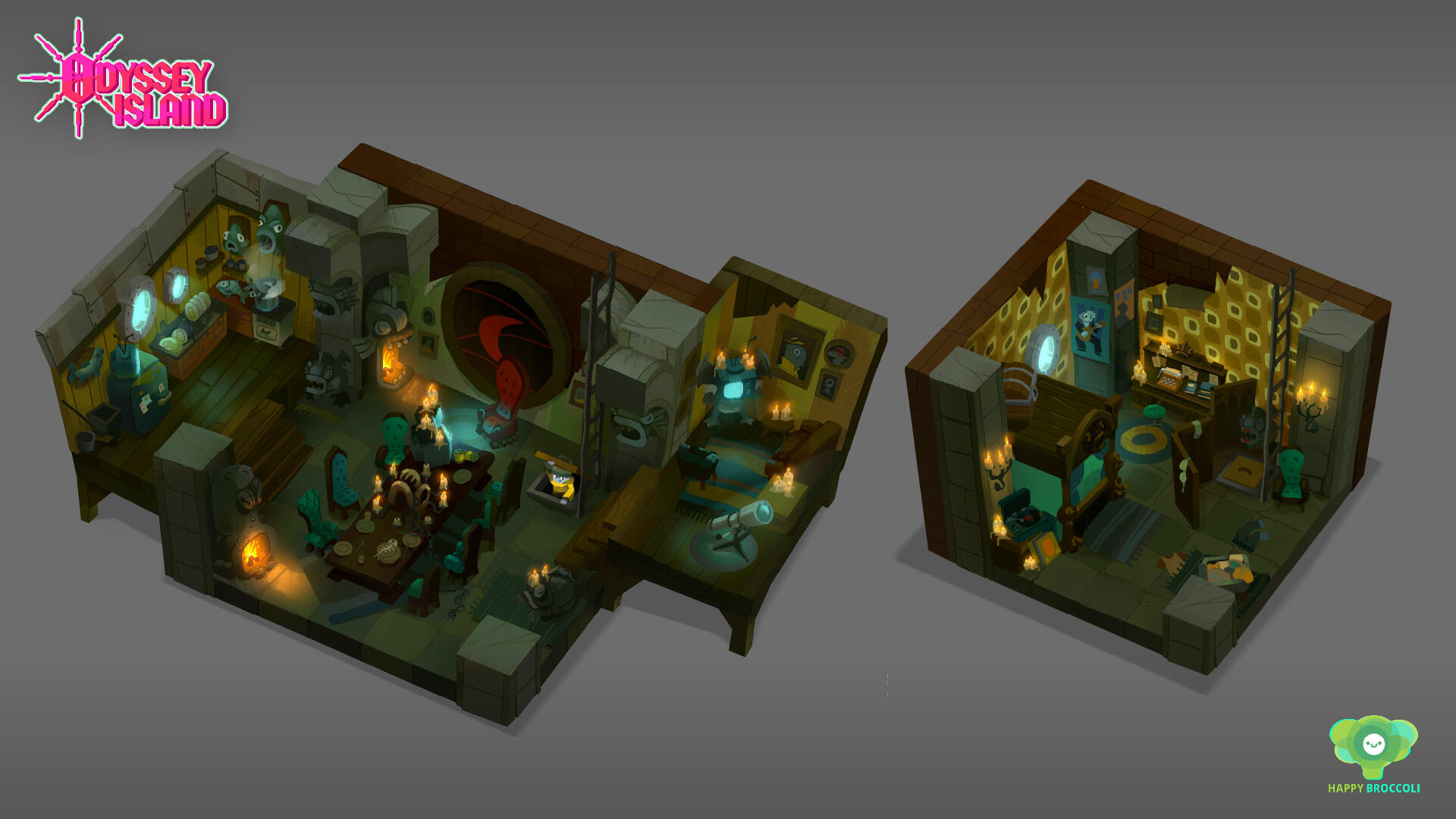 Early visual development for a stylized pirate game, focused on defining distinct island biomes and their narrative identity.